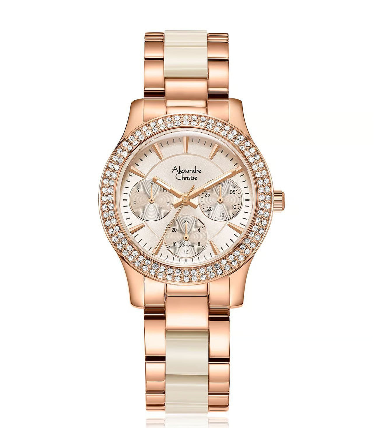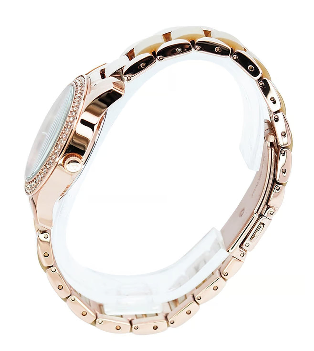 The attractive watch conveys a glamorous urban look with its color. It features a timeless dial encrusted with polished accents, creating a dressy look that is perfect for any occasion. The trendy stainless steel case and bracelet add a bold touch of contemporary style.