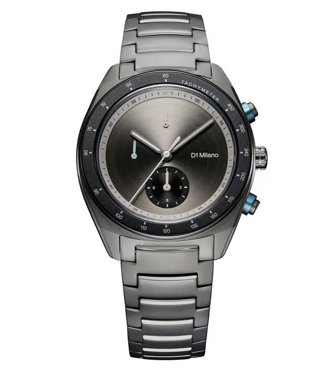 The new chronograph Essential Black combines precision engineering with minimalistic design, featuring sandblasted stainless steel case and bracelets in Gun Metal finish with clean lines, durable materials, and EPSON YM92 quartz movement. Renowned for their minimalistic aesthetics and robust construction, these timepieces cater to discerning individuals who value both functionality and style. The design ethos of the D1 Milano Chronograph collection centers around minimalism and clean lines. Each timepiece features a dial that is free from unnecessary clutter.