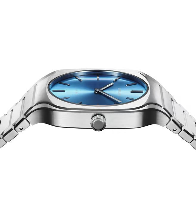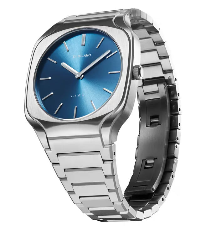 The square case adds a distinctive touch to the overall design, exuding a sense of individuality and contemporary fashion. The 37 mm size strikes a harmonious balance, making it versatile for both formal occasions and everyday wear. The silver stainless steel case enhances the watch's durability while maintaining a sleek and polished appearance.