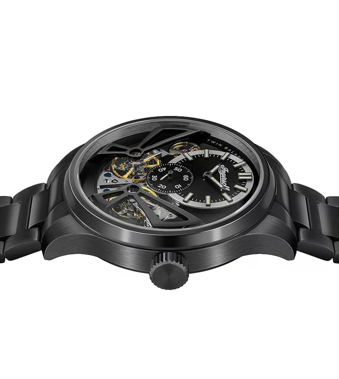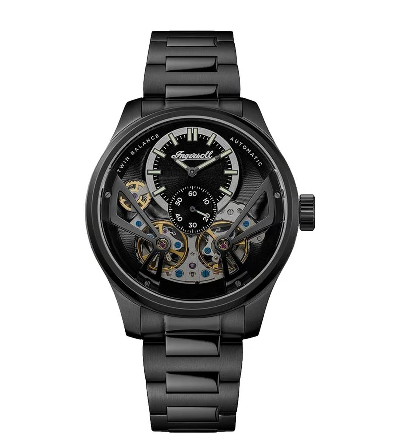 Elevate your style with this refined craftsmanship of the Ingersoll automatic watch. This timepiece features a 46 mm stainless steel case with a polished finish, offering an eye-catching design. The fixed bezel seamlessly integrates with the sleek case, while the glass-bottom, screwed case back adds a touch of elegance. With 50 m water resistance, this watch effortlessly combines timeless aesthetics with durability for casual occasions.