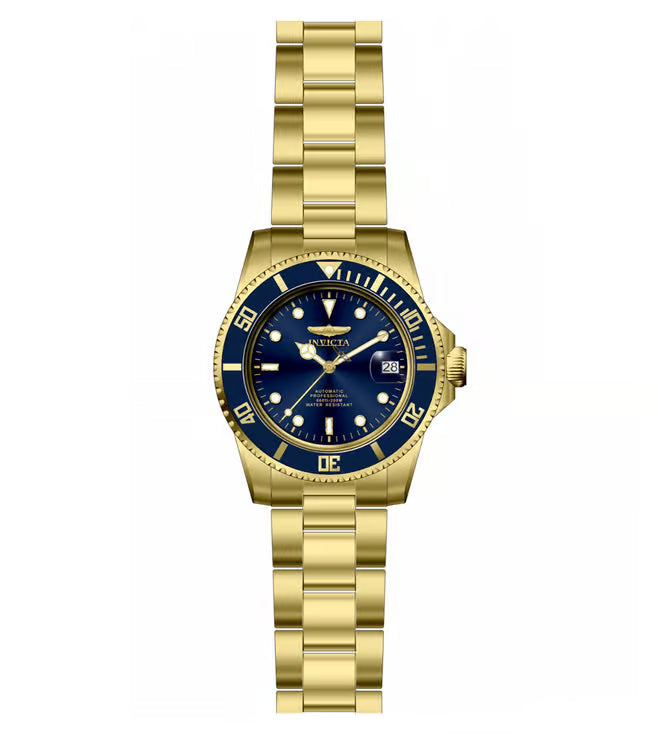 The Invicta 35699 has a 40 millimetres gold stainless steel case with a navy blue dial. This model is powered by an accurate Automatic movement, protected by mineral crystal.20 bar water pressure resistant. This model is part of the Invicta Pro Diver collection. Including 2-year Invicta warranty.