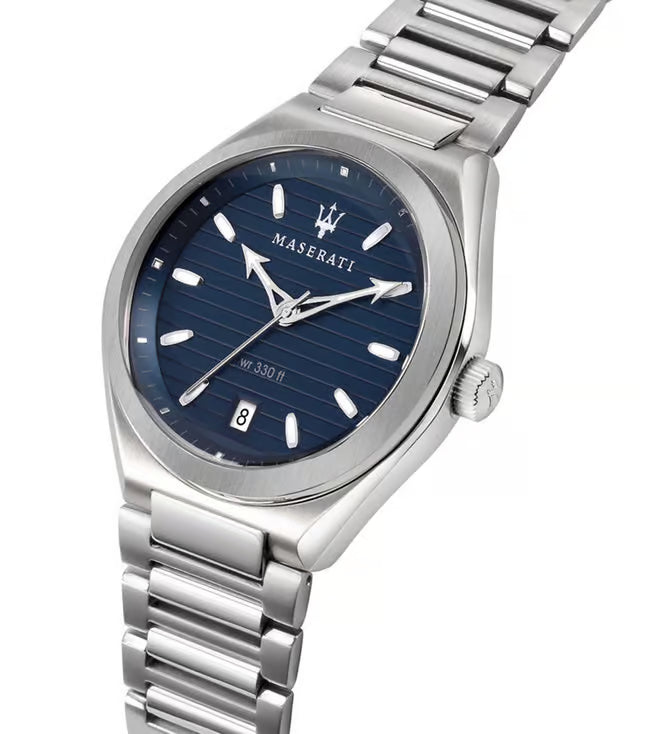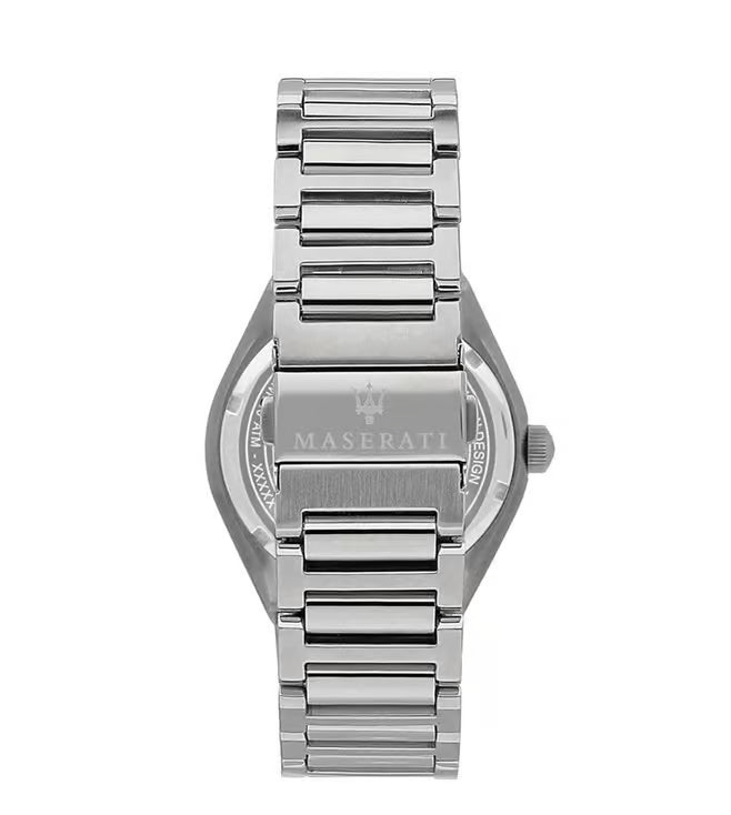 Make a statement wherever you go with this Maserati Triconic men's watch. The stainless steel timepiece houses a round dial. The dial features stick indices, a date tracker at the 6 o'clock marker and the iconic Maserati logo at the 12 o'clock marker. This timepiece is a classic ensemble you must have in your watch collection.