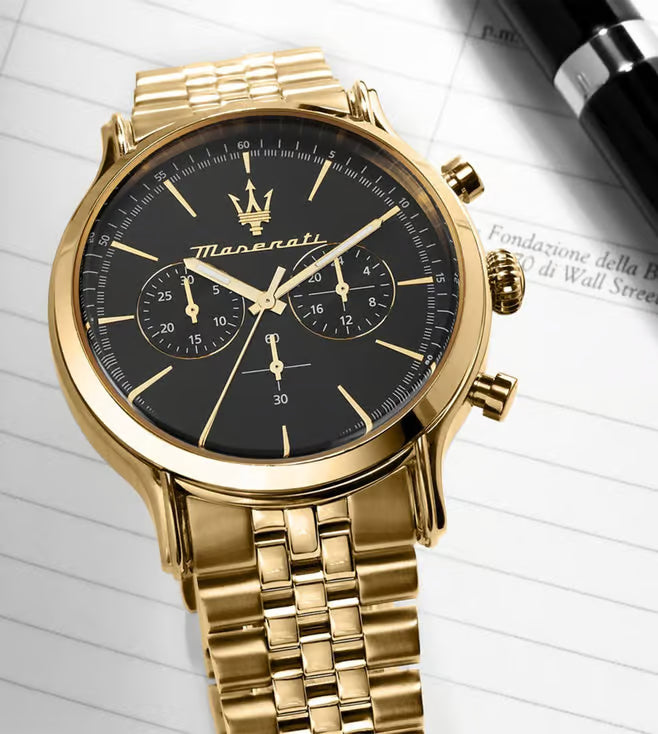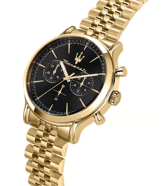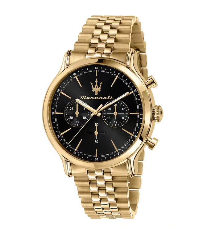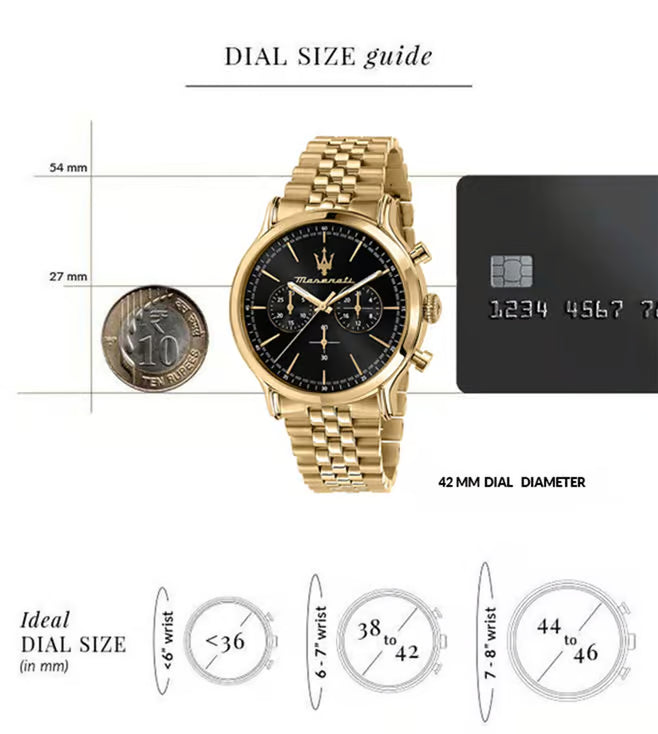 Style arrives effortlessly the moment you wear this intelligently designed analog watch by Maserati. The 42 mm analog dial, is protected by a mineral crystal encased by a polished case. The Maserati watch is a perfect accessory for the man who prefers a stylish feel. Complimented by a stunning metal bracelet, it can withstand submersible conditions with 100 m water resistance.