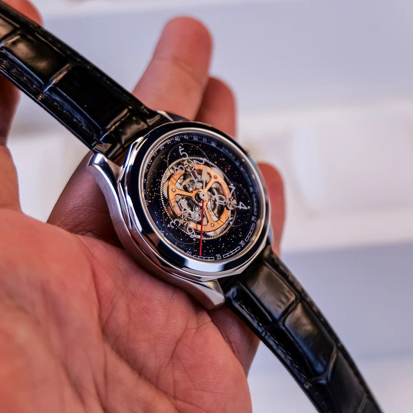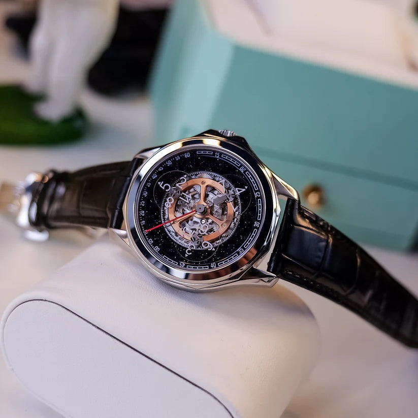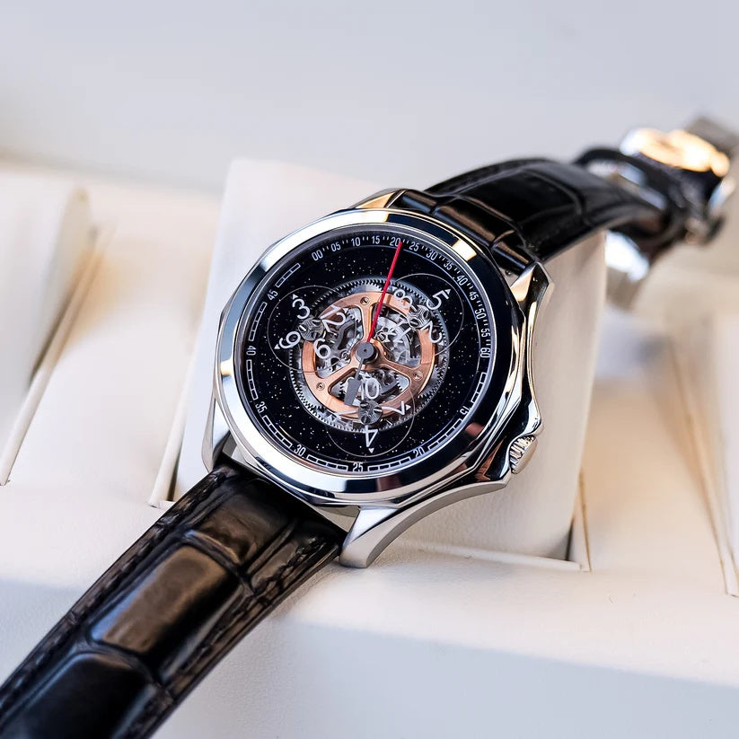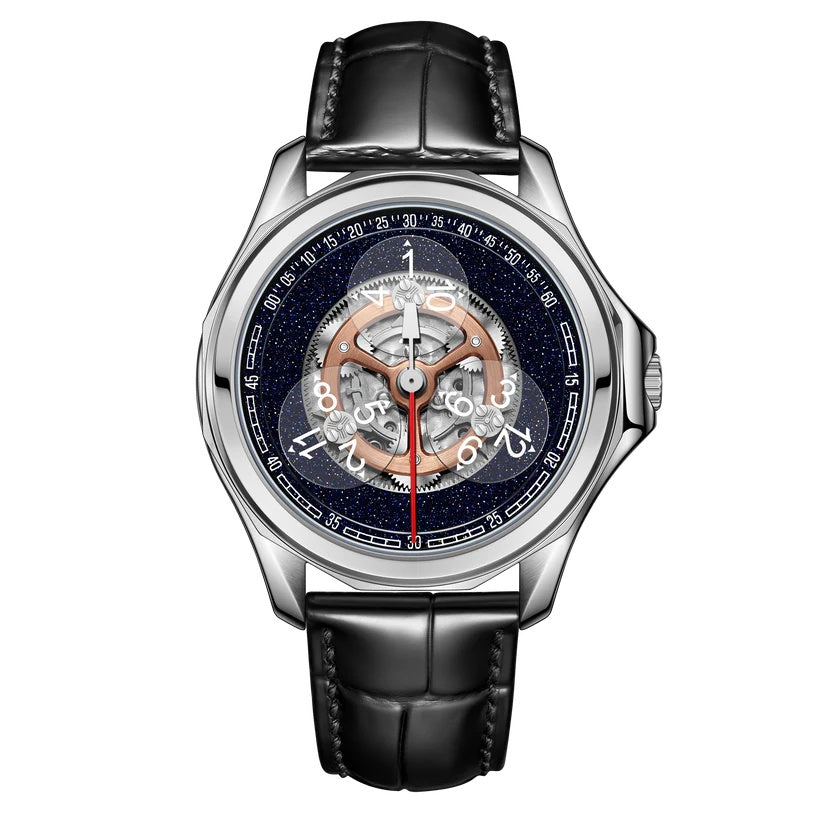| The Oblvlo DK-STA YSB Series Watch is a masterful fusion of precision engineering and sophisticated design, crafted for the discerning gentleman who values individuality and timeless elegance. This remarkable timepiece captivates with its visually arresting skeleton dial, offering an intimate view of its intricate mechanical movement  a testament to traditional watchmaking artistry. Its automatic functionality ensures effortless performance, seamlessly blending innovation with heritage craftsmanship. Every detail, from its bold case design to the exquisite inner workings on display, speaks to a commitment to excellence and distinctive style. More than a mere instrument of time, the DK-STA YSB Series Watch is a statement of success and refined taste, designed for those who appreciate the rare and extraordinary in luxury horology. |
