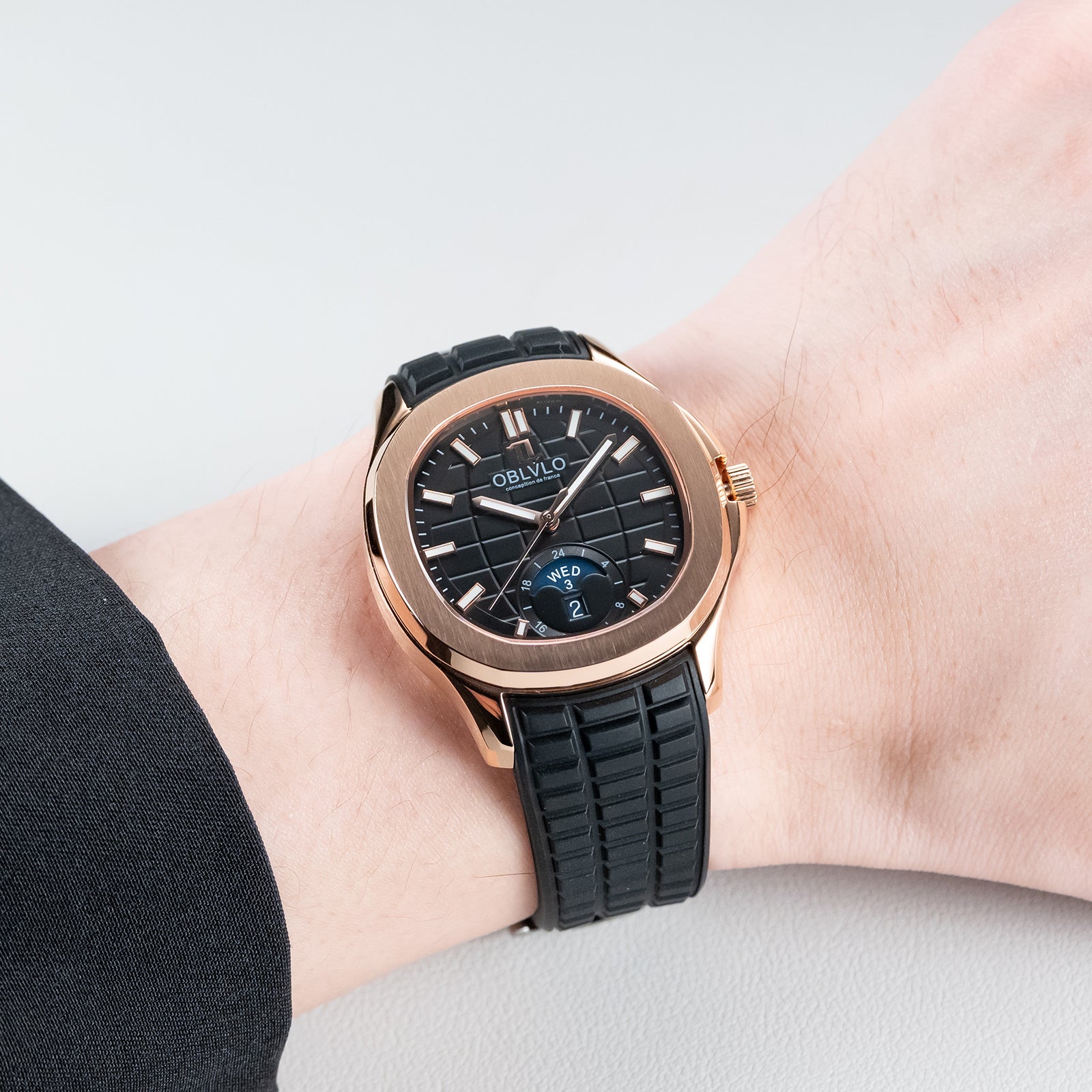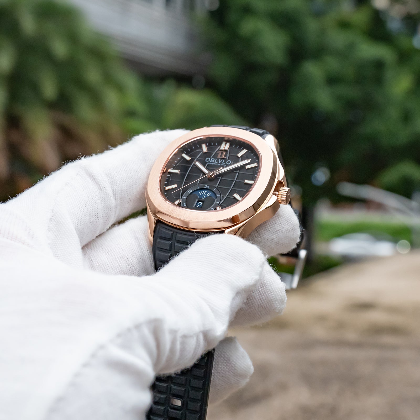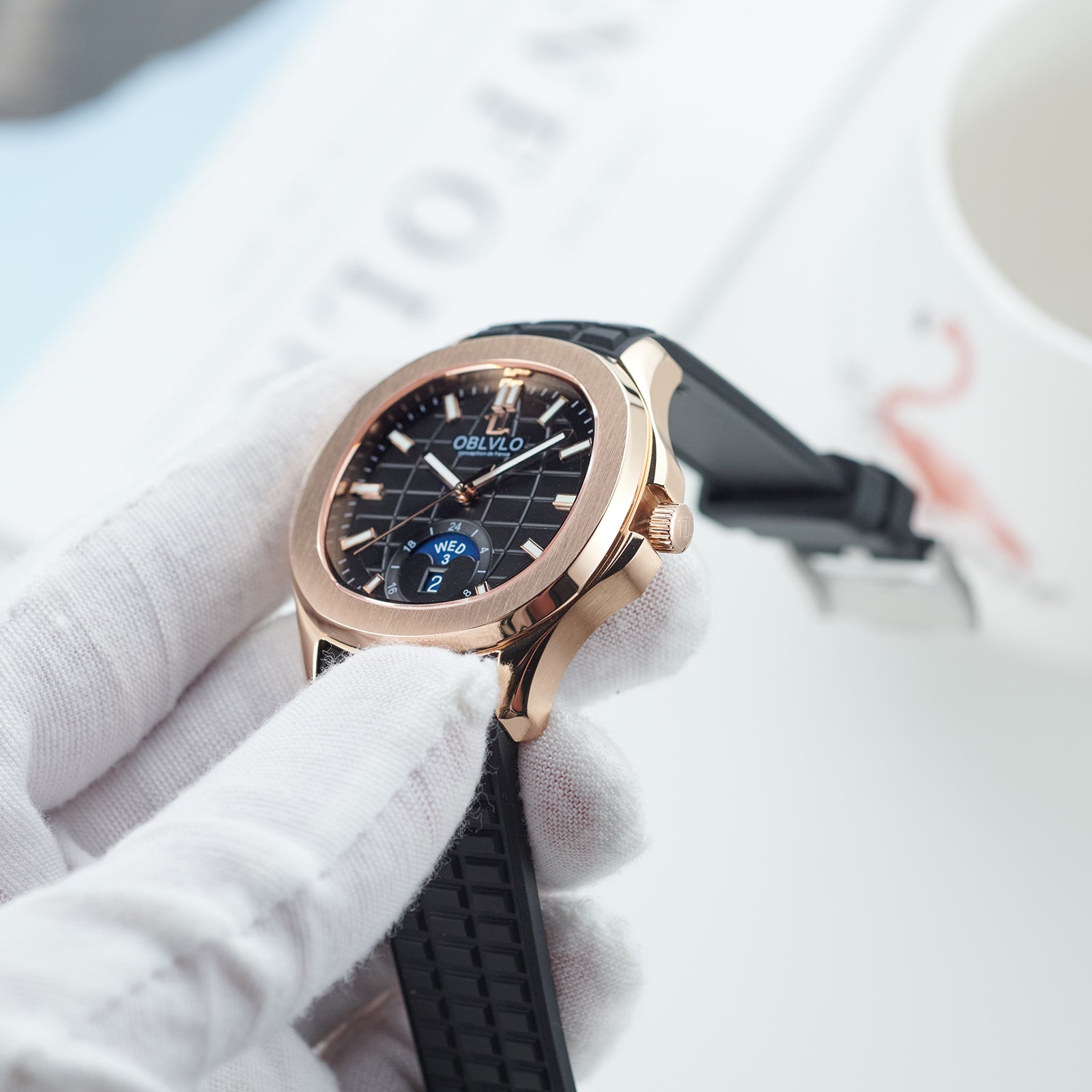 | Oblvlo unveils a masterpiece of modern luxury, crafted with exquisite attention to detail and bold architectural elegance. At its heart beats the esteemed Miyota 8205 automatic movement, delivering refined precision and a truly effortless mechanical rhythm. The sculpted case and opulent finishing exude a commanding presence, capturing the essence of contemporary sophistication. Every curve and contour reflects masterful craftsmanship, elevating the watch into a realm of timeless prestige. More than a timepiece, it stands as a statement of distinction—where luxury meets mechanical artistry. |
