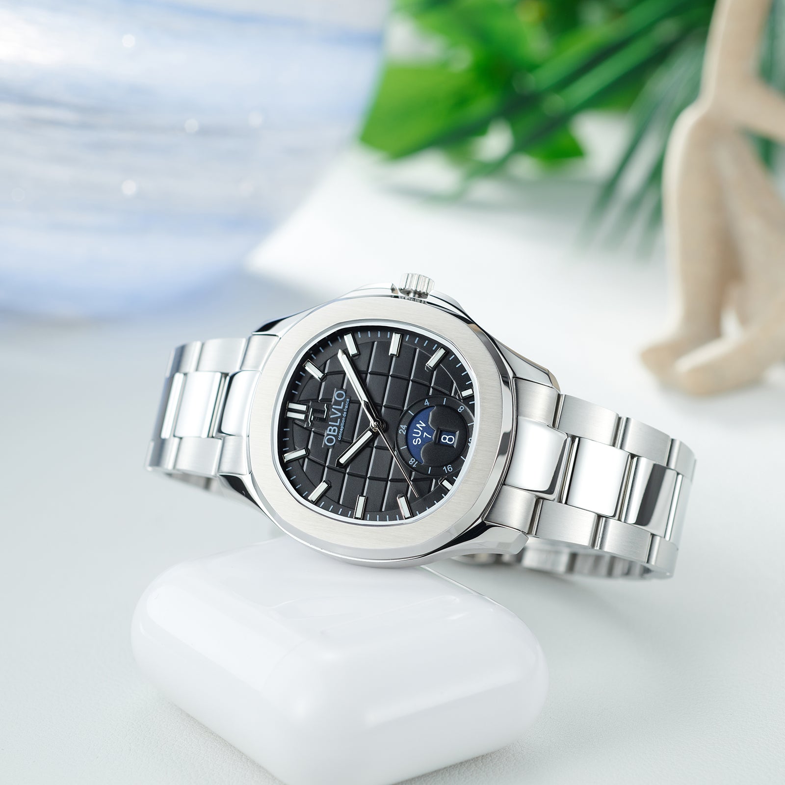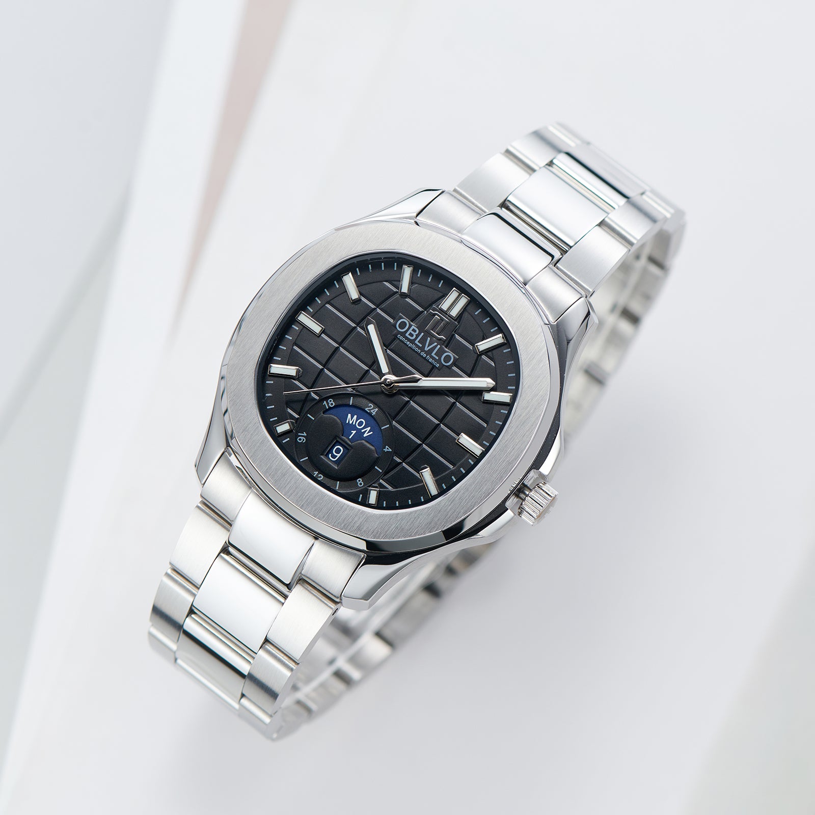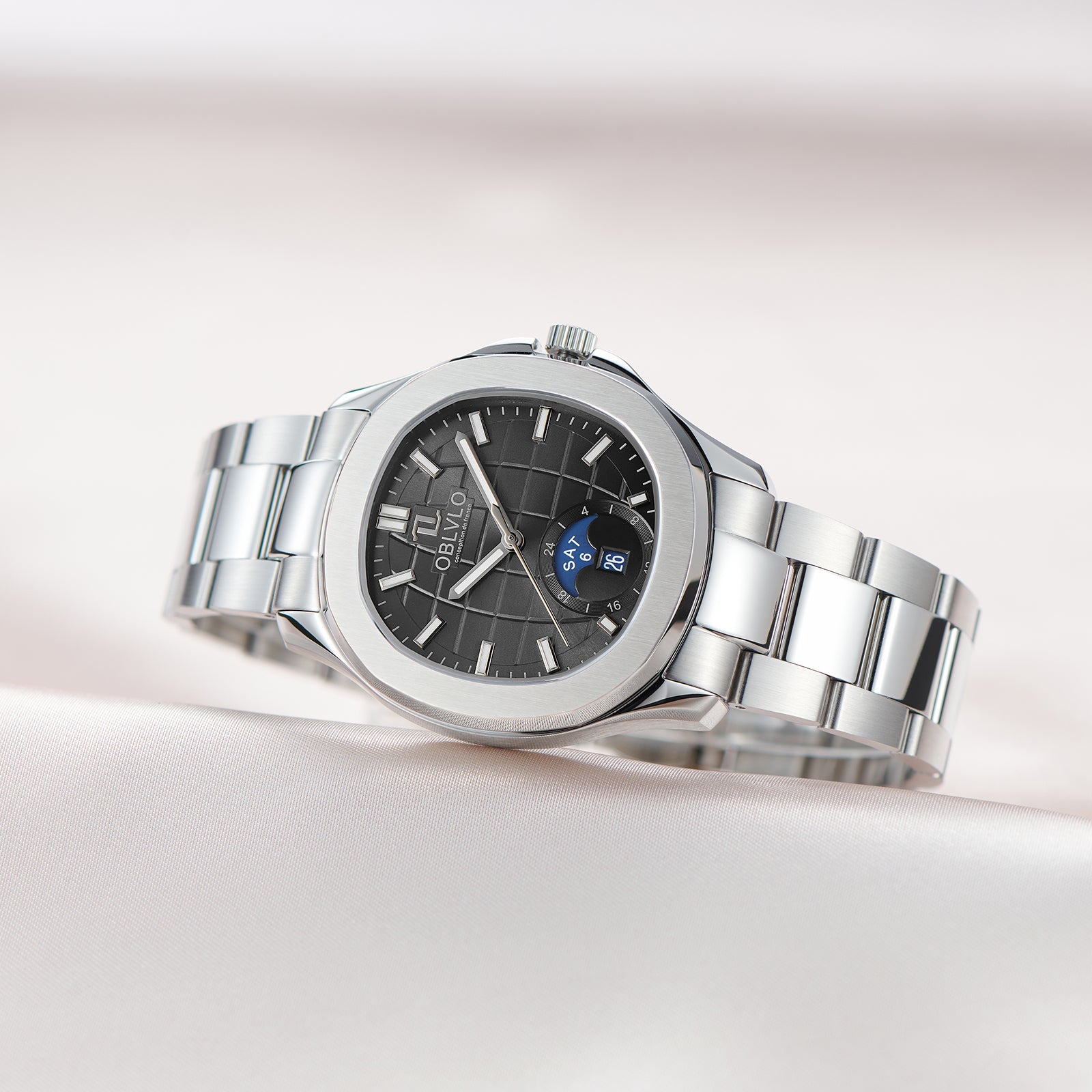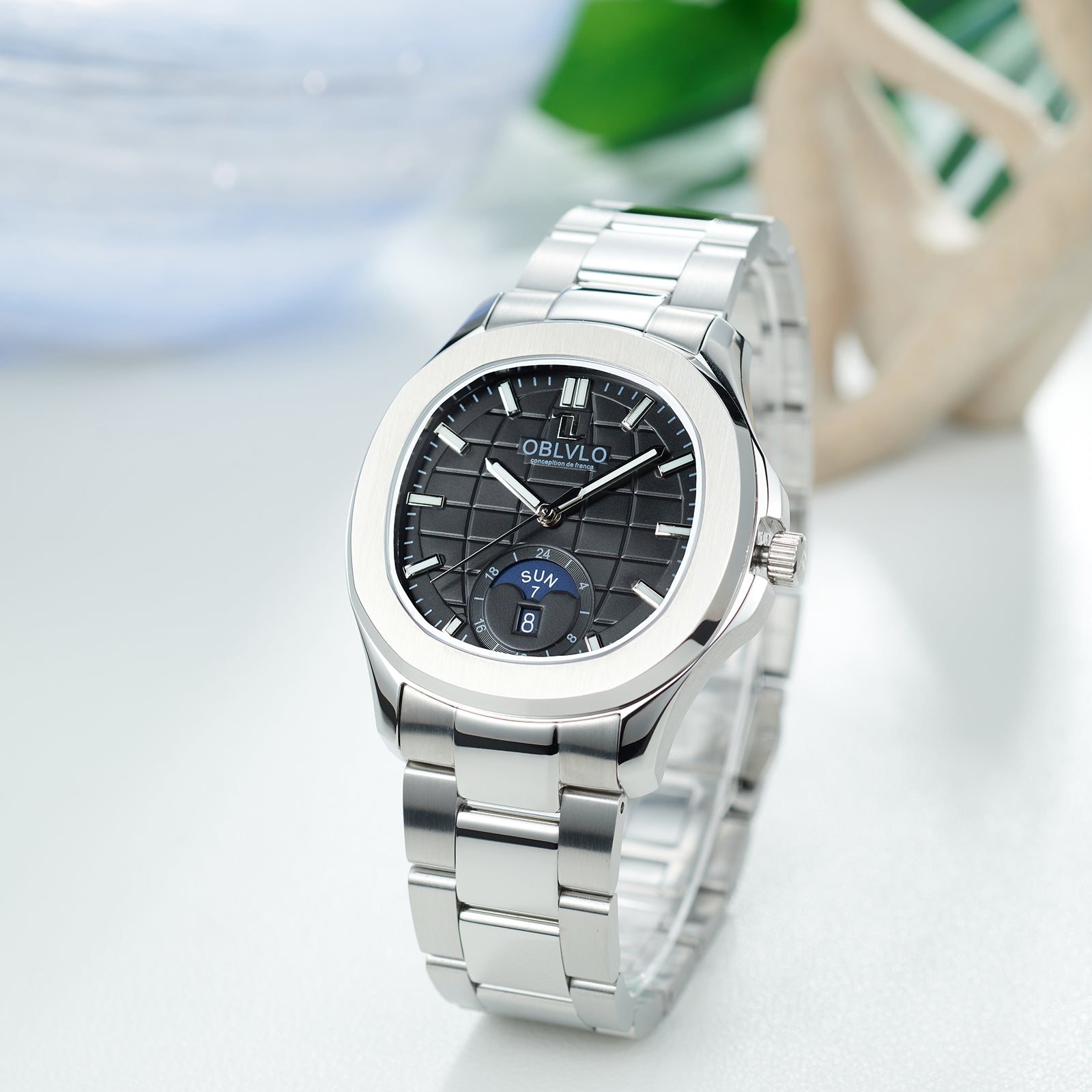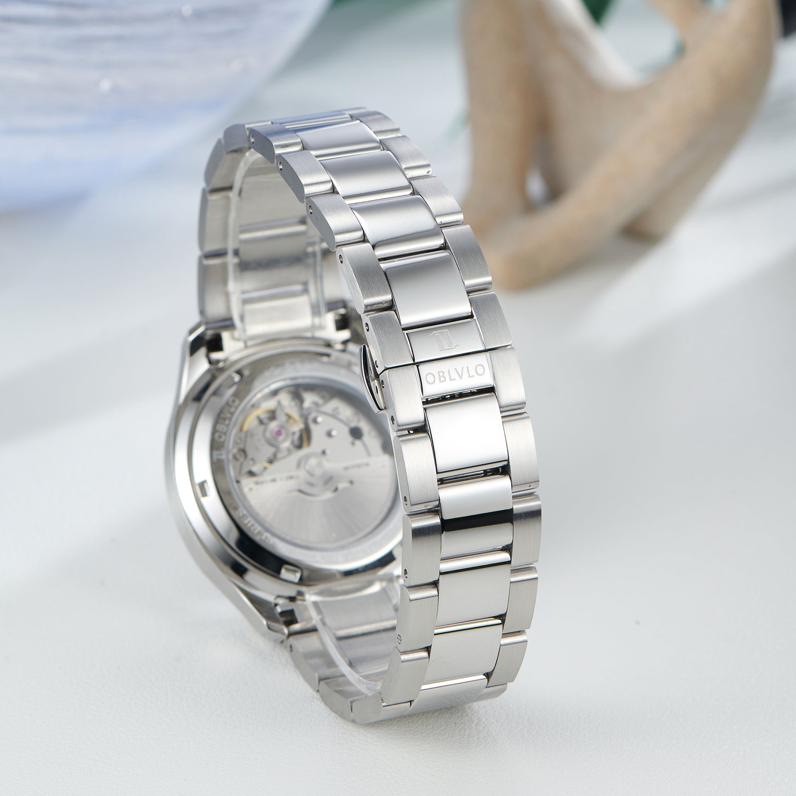 | The OBLVLO timepiece embodies an aura of refined opulence, crafted with meticulous attention to detail that instantly commands admiration. Powered by the esteemed Miyota 8205 automatic movement, it offers unwavering precision and a smooth mechanical heartbeat that speaks to true watchmaking excellence. Its exquisitely polished case and intricately styled dial reflect a harmony of elegance and modern finesse. Every contour and finish evokes sophistication, creating a presence that feels both powerful and understated. This OBLVLO watch stands as a testament to timeless luxury, engineered for those who appreciate mastery in every motion. |