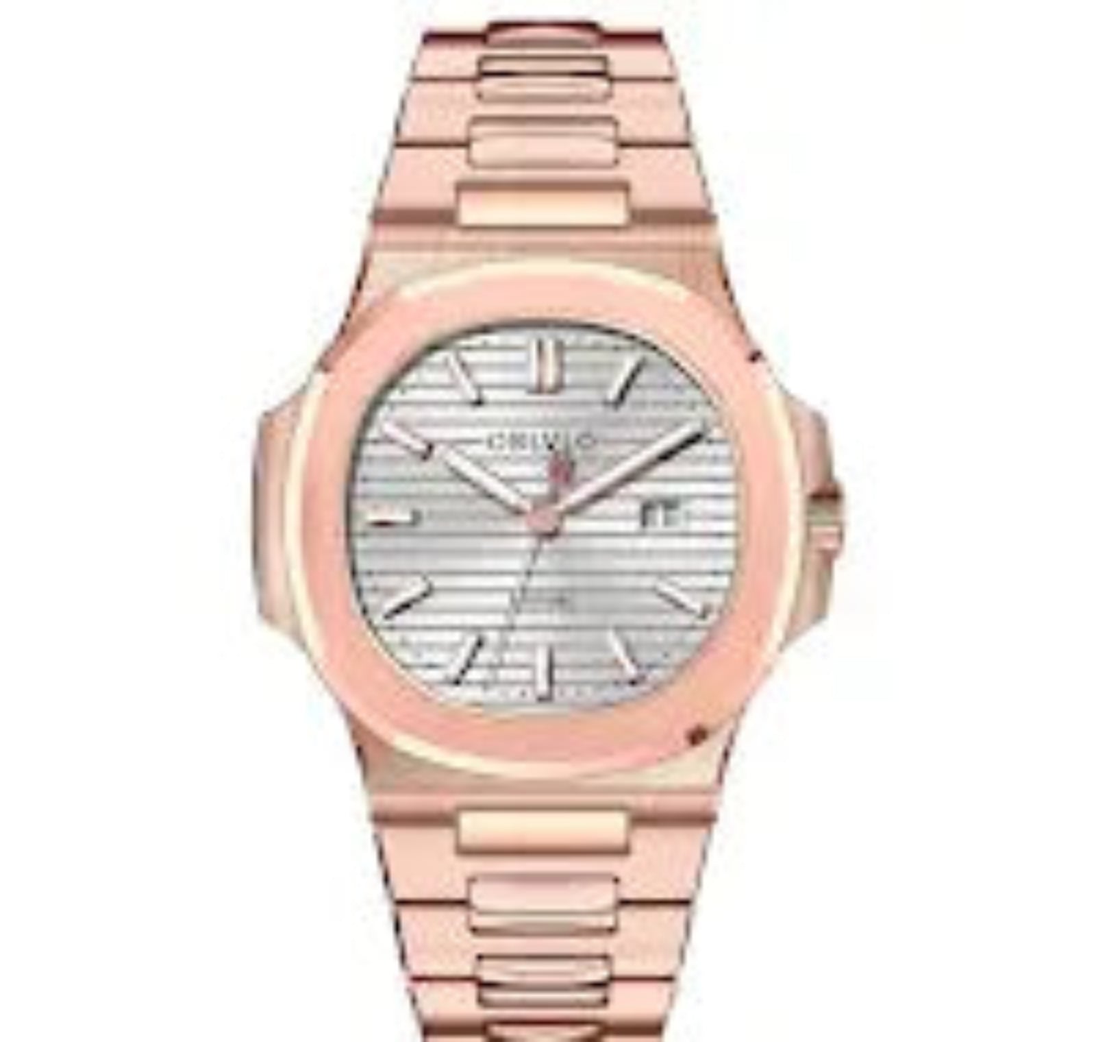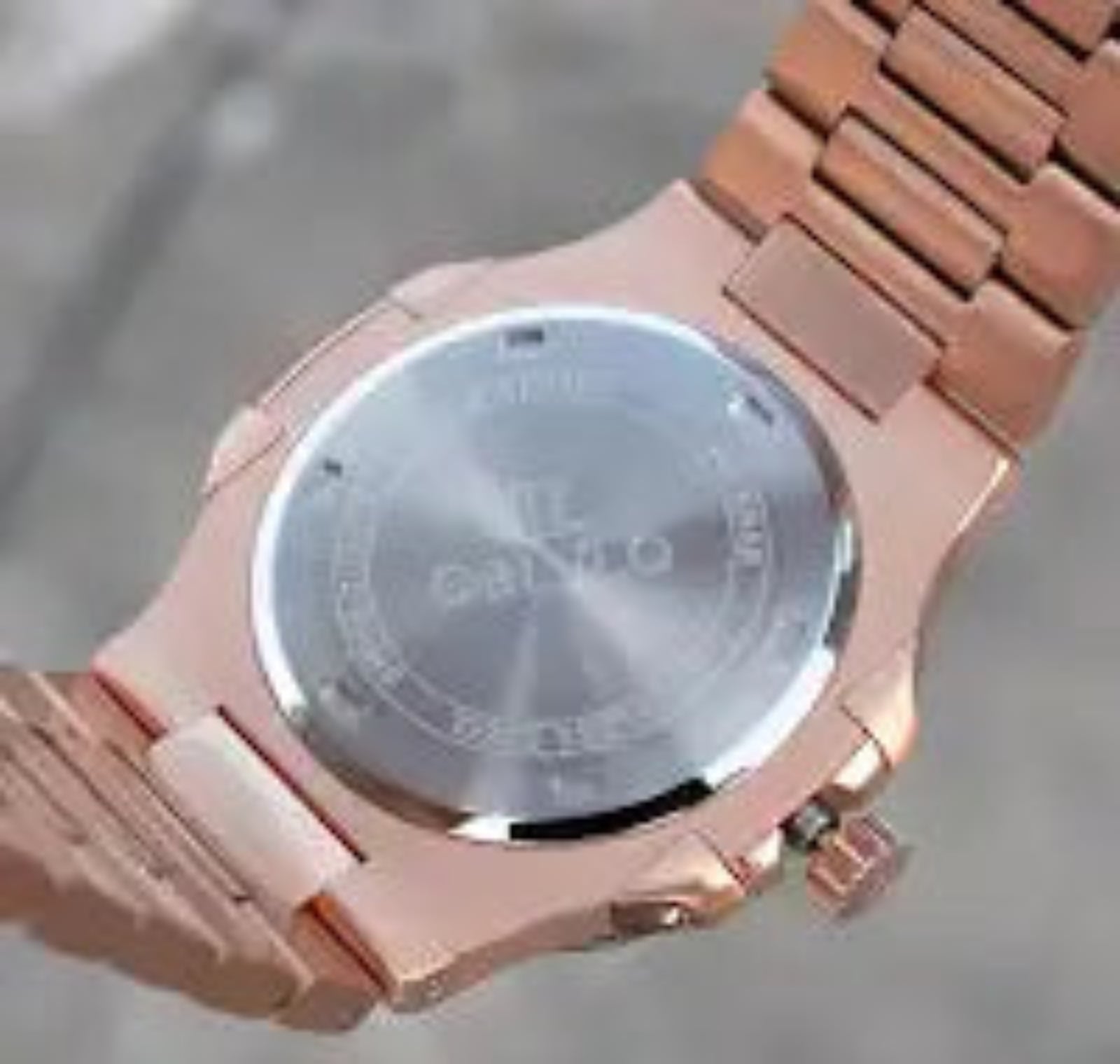 | The OBLVLO timepiece is a refined expression of modern luxury, crafted for those who appreciate understated elegance. Encased in a radiant rose-gold tone, its sculpted silhouette flows seamlessly into a meticulously finished bracelet, creating a bold yet graceful presence on the wrist. The horizontally textured dial reflects light with subtle sophistication, while polished hour markers and finely shaped hands offer a perfect balance of precision and artistry. A discreet date window enhances functionality without disturbing the harmony of the design, and the sapphire crystal ensures lasting clarity and resilience. Every detail speaks of confidence, craftsmanship, and timeless prestige—an embodiment of OBLVLO’s commitment to elevated style and enduring excellence. |
