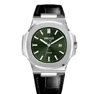 | A statement of refined elegance, this OBLVLO timepiece embodies modern luxury with its striking green sunburst dial and impeccably brushed stainless steel case. The harmonious interplay of bold geometry and polished accents creates a design that is both contemporary and timeless. Enhanced by luminous hands and indices, the watch offers effortless readability while exuding quiet sophistication. The integrated black leather strap adds a touch of classic prestige, ensuring comfort with distinguished style. Crafted for those who appreciate subtle opulence, this watch is not merely an accessory, but an expression of confidence and taste. |