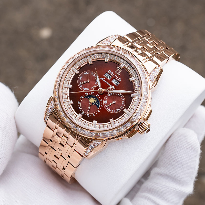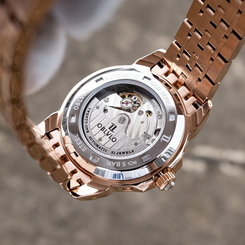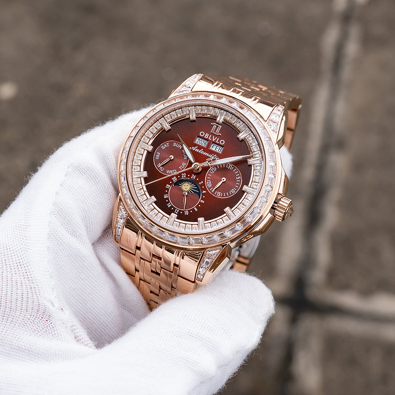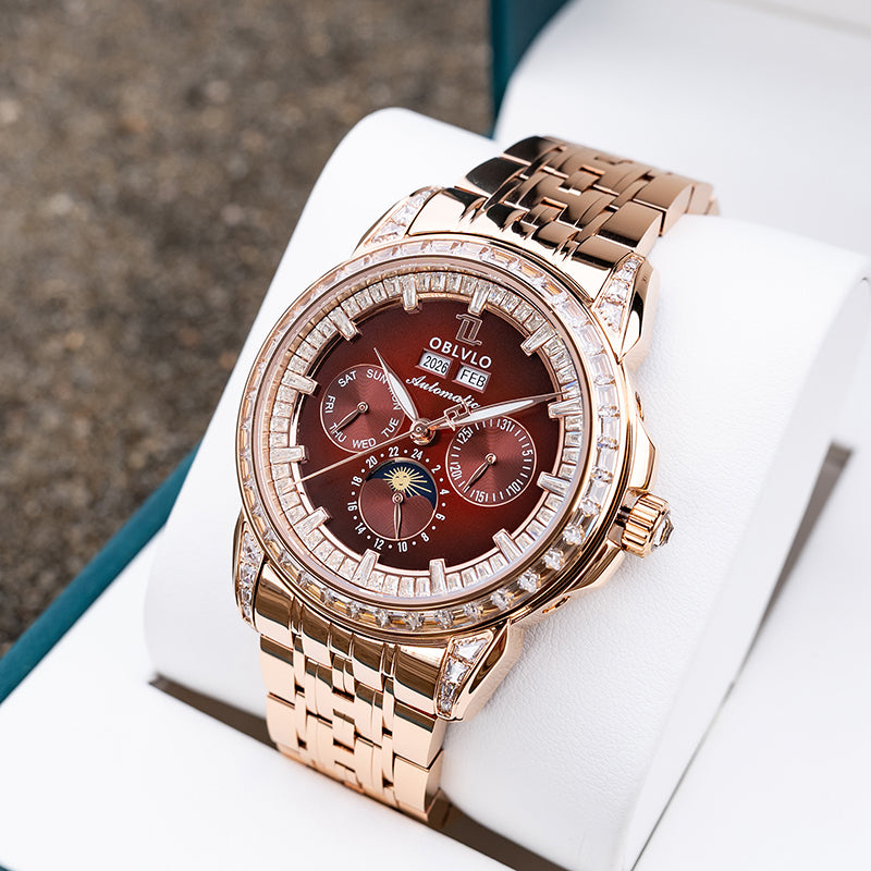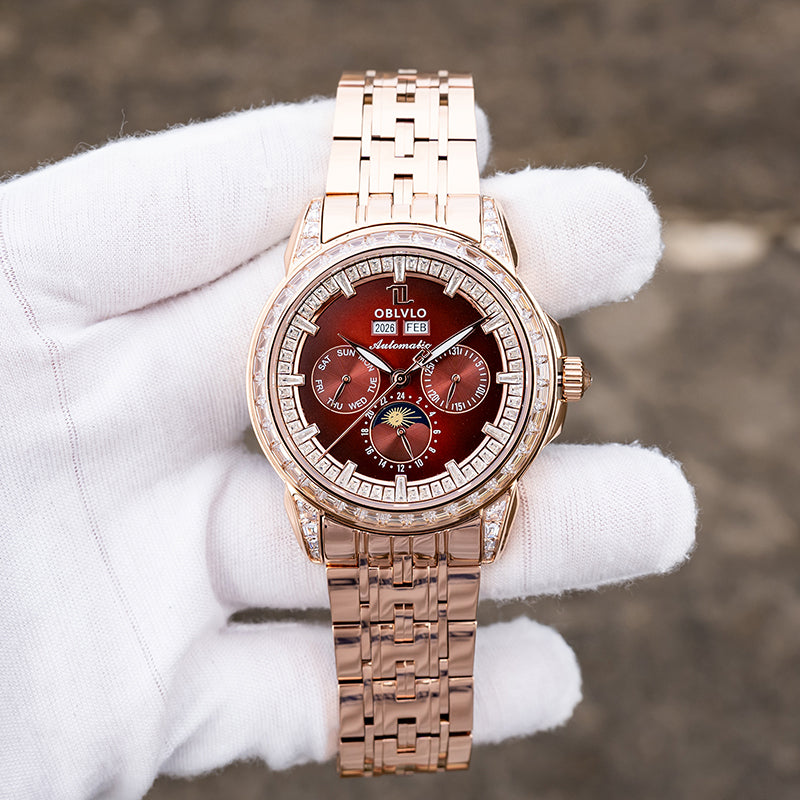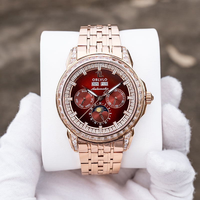 | The OBLVLO timepiece is a masterpiece of opulence and precision, crafted for those who appreciate true luxury. Powered by the distinguished TY1655 automatic movement, it delivers seamless performance and timeless reliability. The exquisite dial, adorned with refined detailing, radiates sophistication under every light. Its polished case and sapphire crystal case back reveal the graceful dance of its intricate mechanics. More than a watch, it is a statement of prestige, artistry, and enduring elegance. |