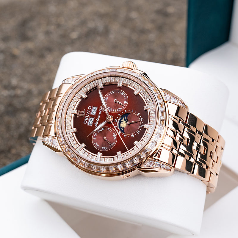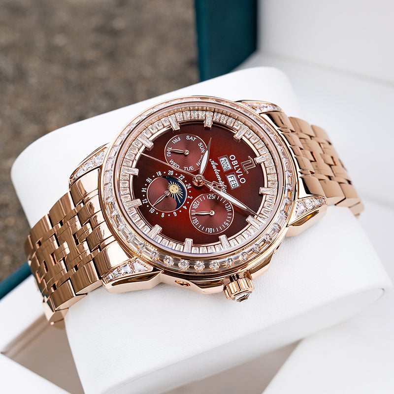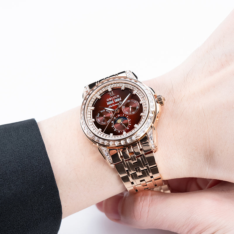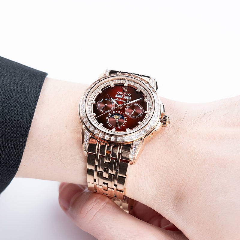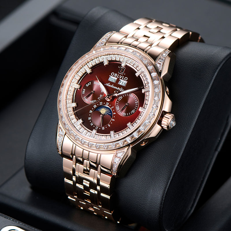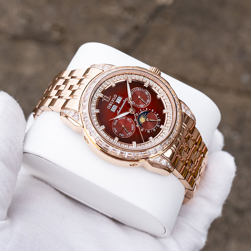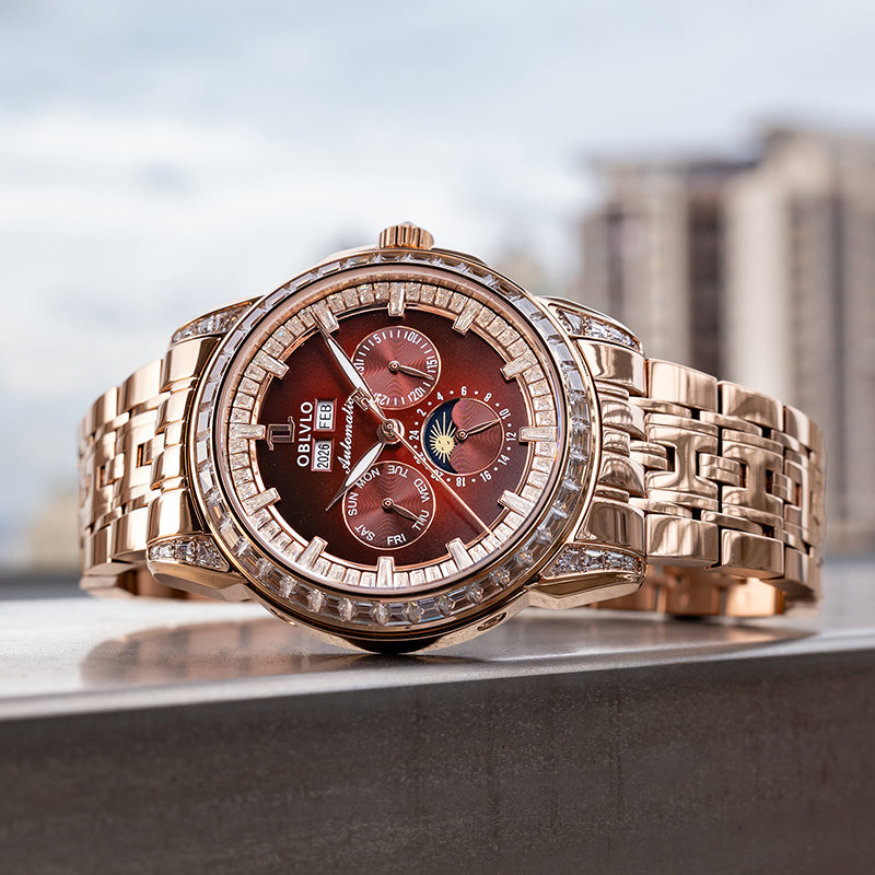 | The OBLVLO timepiece is a masterpiece of opulence and precision, crafted for those who appreciate true luxury. Powered by the distinguished TY1655 automatic movement, it delivers seamless performance and timeless reliability. The exquisite dial, adorned with refined detailing, radiates sophistication under every light. Its polished case and sapphire crystal case back reveal the graceful dance of its intricate mechanics. More than a watch, it is a statement of prestige, artistry, and enduring elegance. |