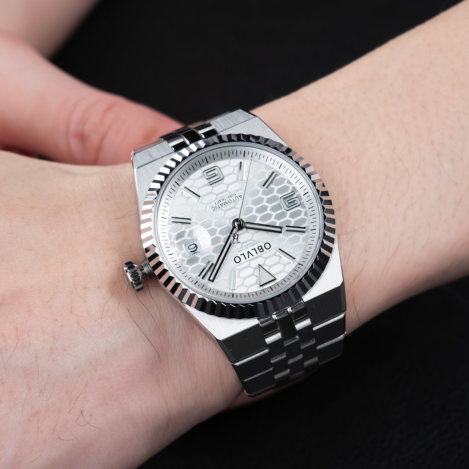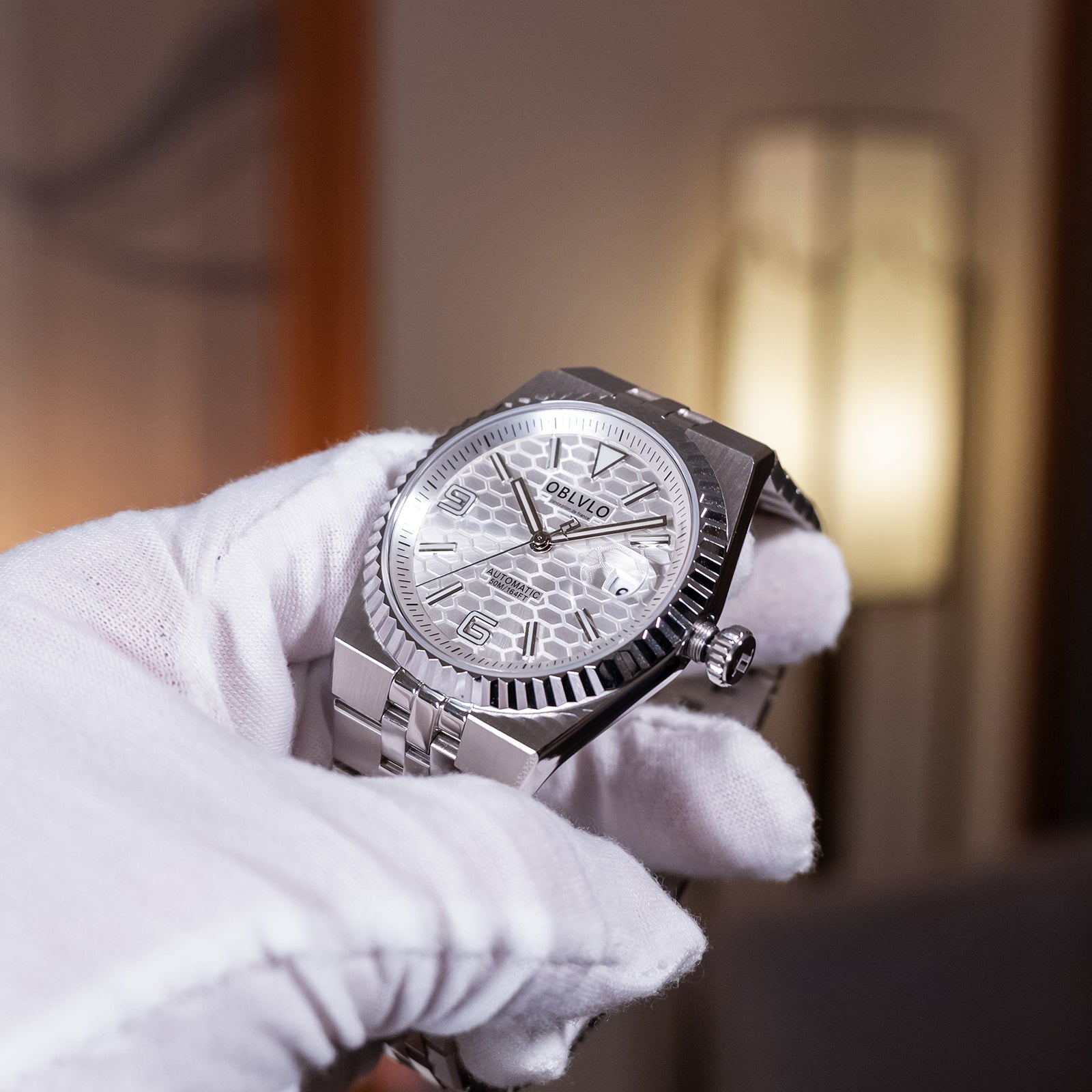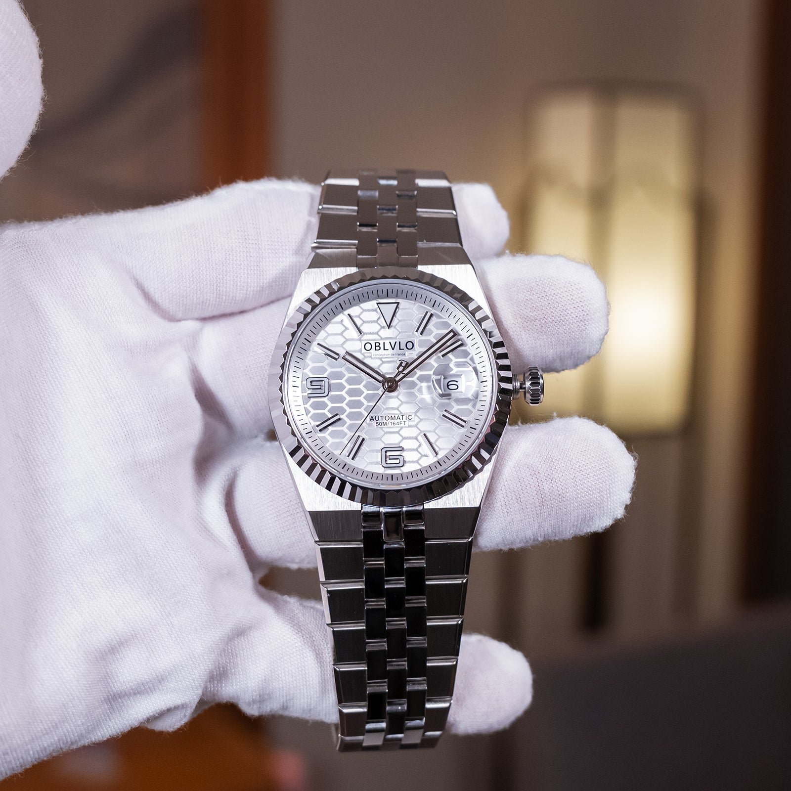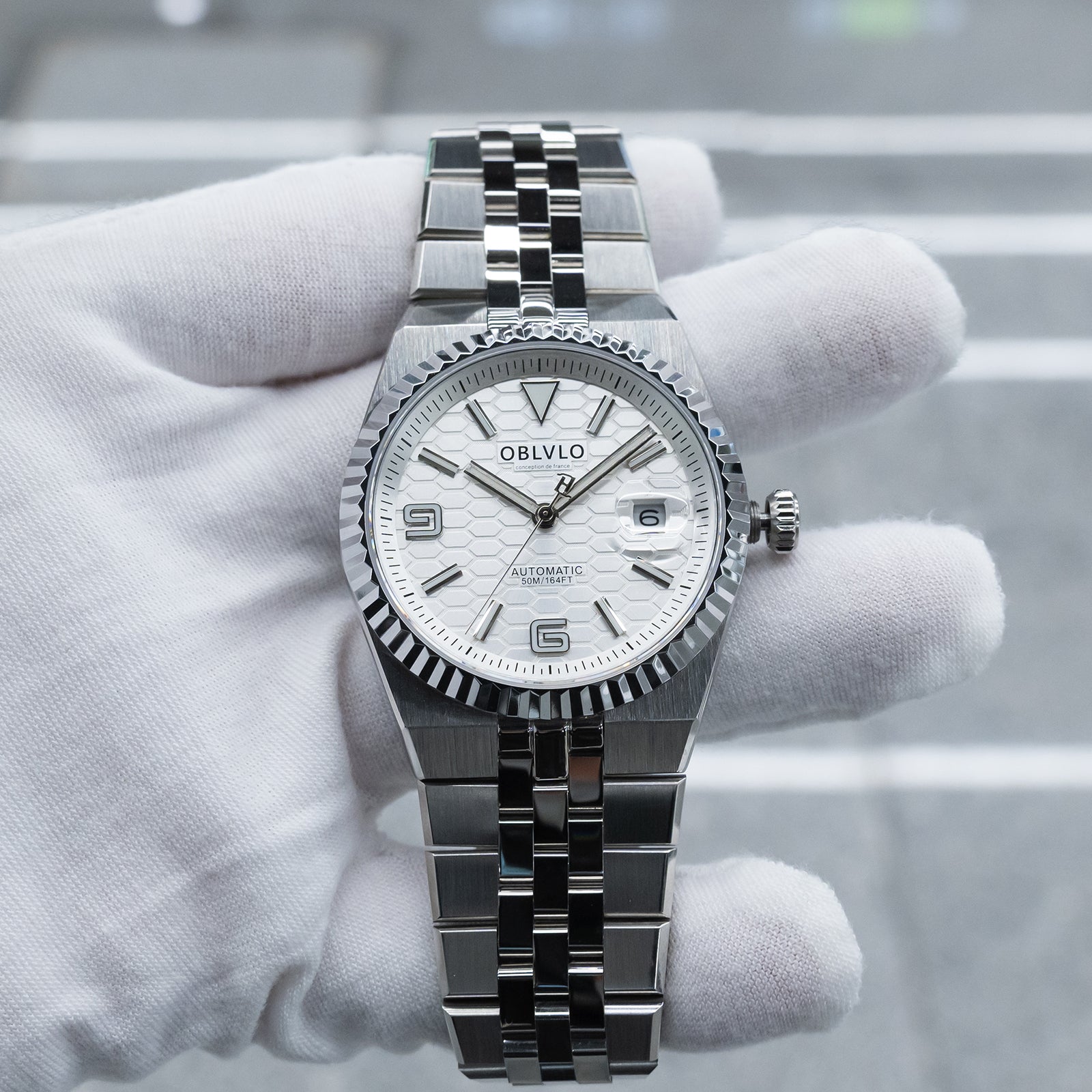This OBLVLO chronograph is a blend of sporty functionality and modern styling — the ice-white (YWYS) dial gives it a fresh and versatile look. It’s great if you want a watch that’s both practical (chronograph + tachymeter + date) and stylish for everyday use or casual outings.