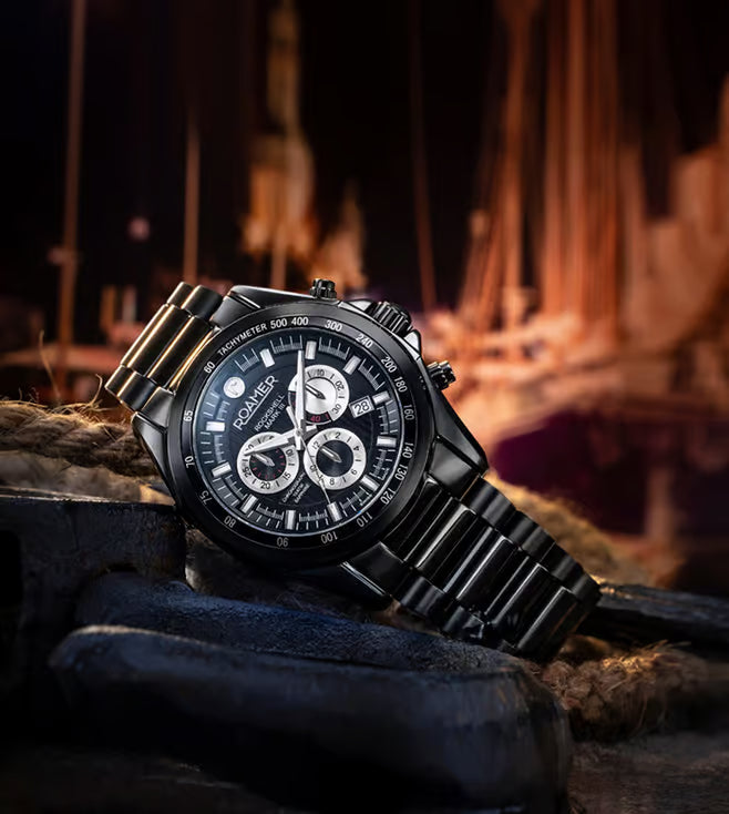 This multifunctional watch combines noble design with reliable functions in Swiss Made quality. Despite an impressive 44 mm diameter, the Rockshell Mark III Chrono emanates a sporty elegant look. The dial comes in various tasteful color compositions and is edged by a smooth tachymeter bezel. Water resistant to 10 ATM, the gorgeous chronograph is available with comfortable brown or black leather strap or solid bracelet in stainless steel, rose gold or gold plating or in bi color design.